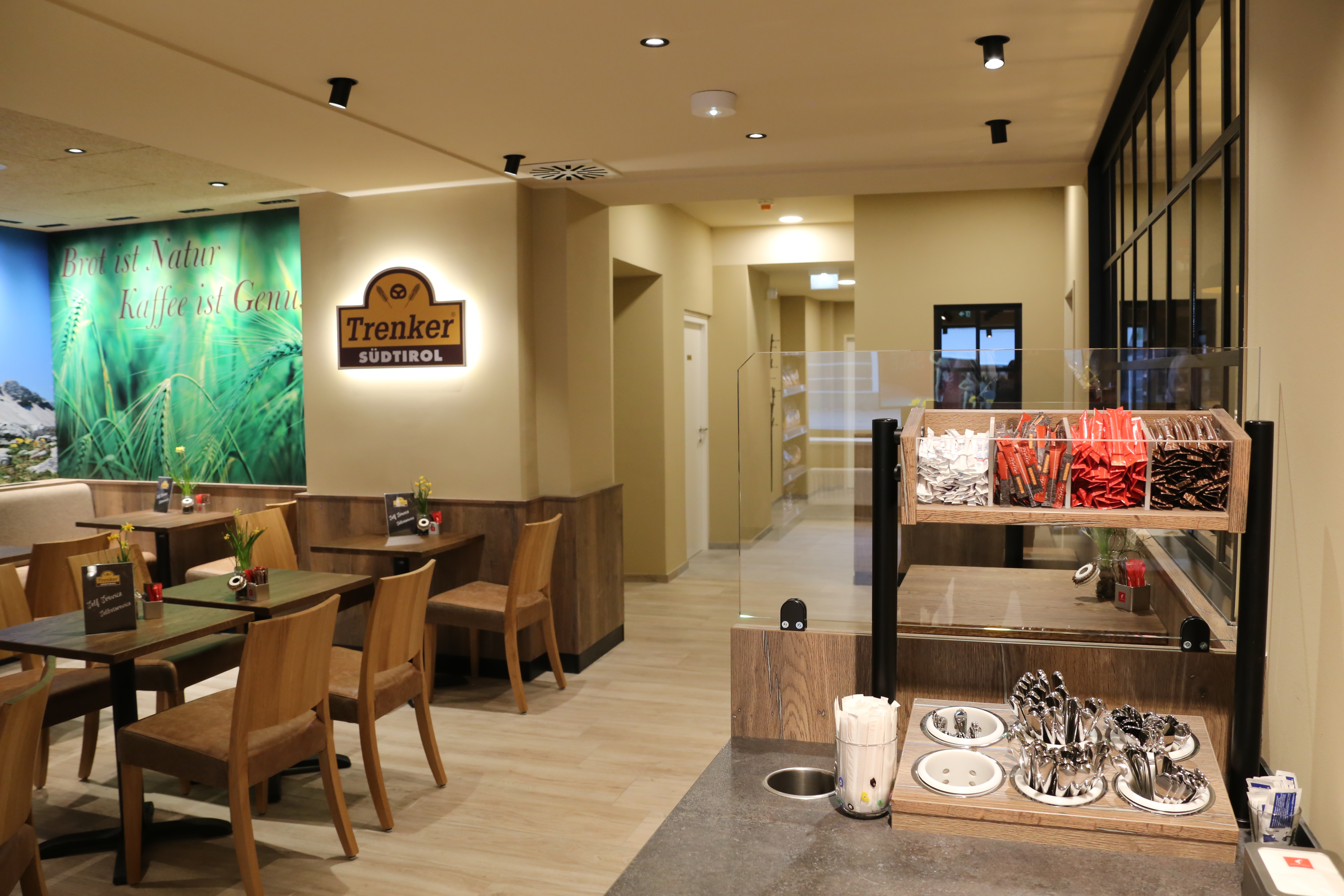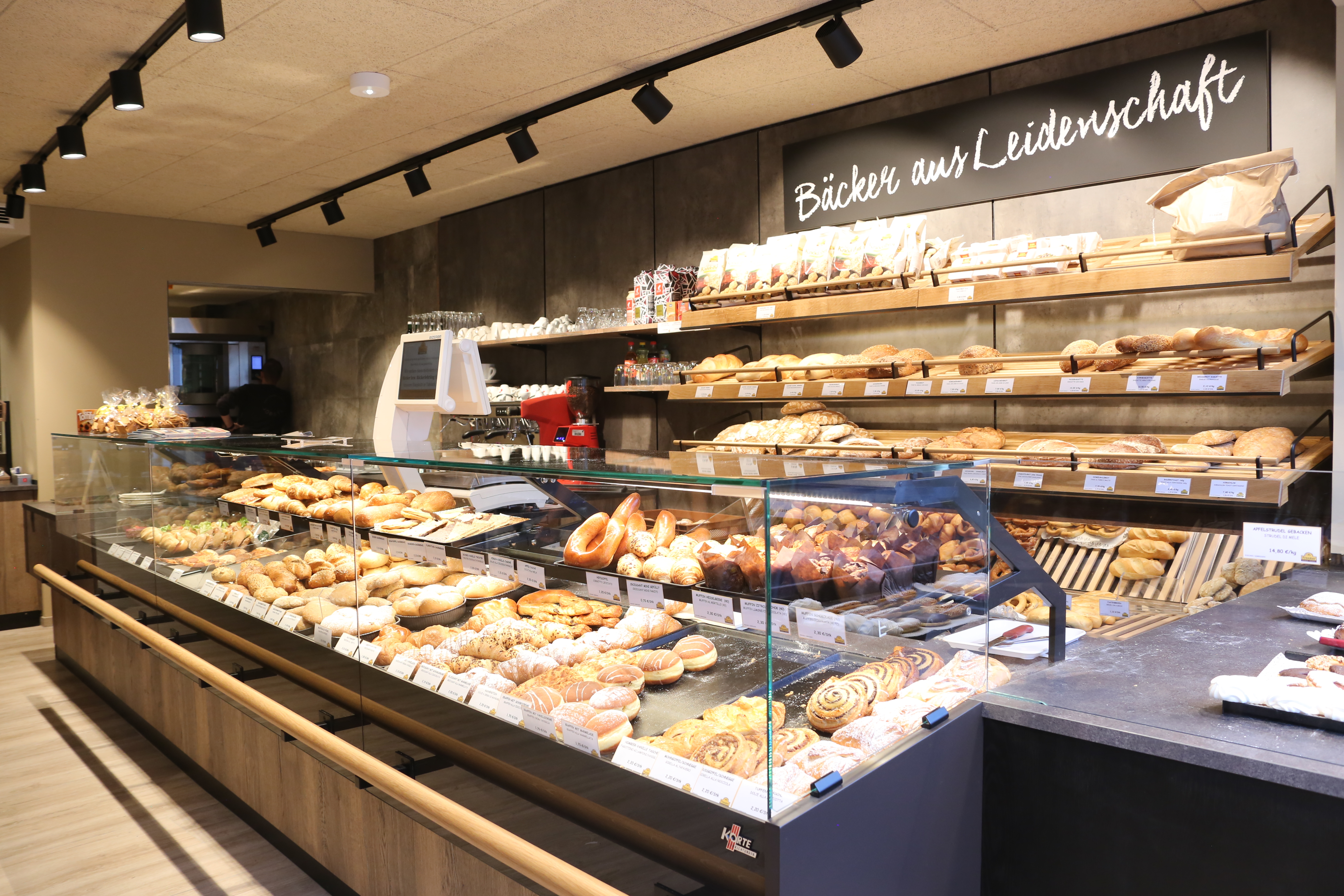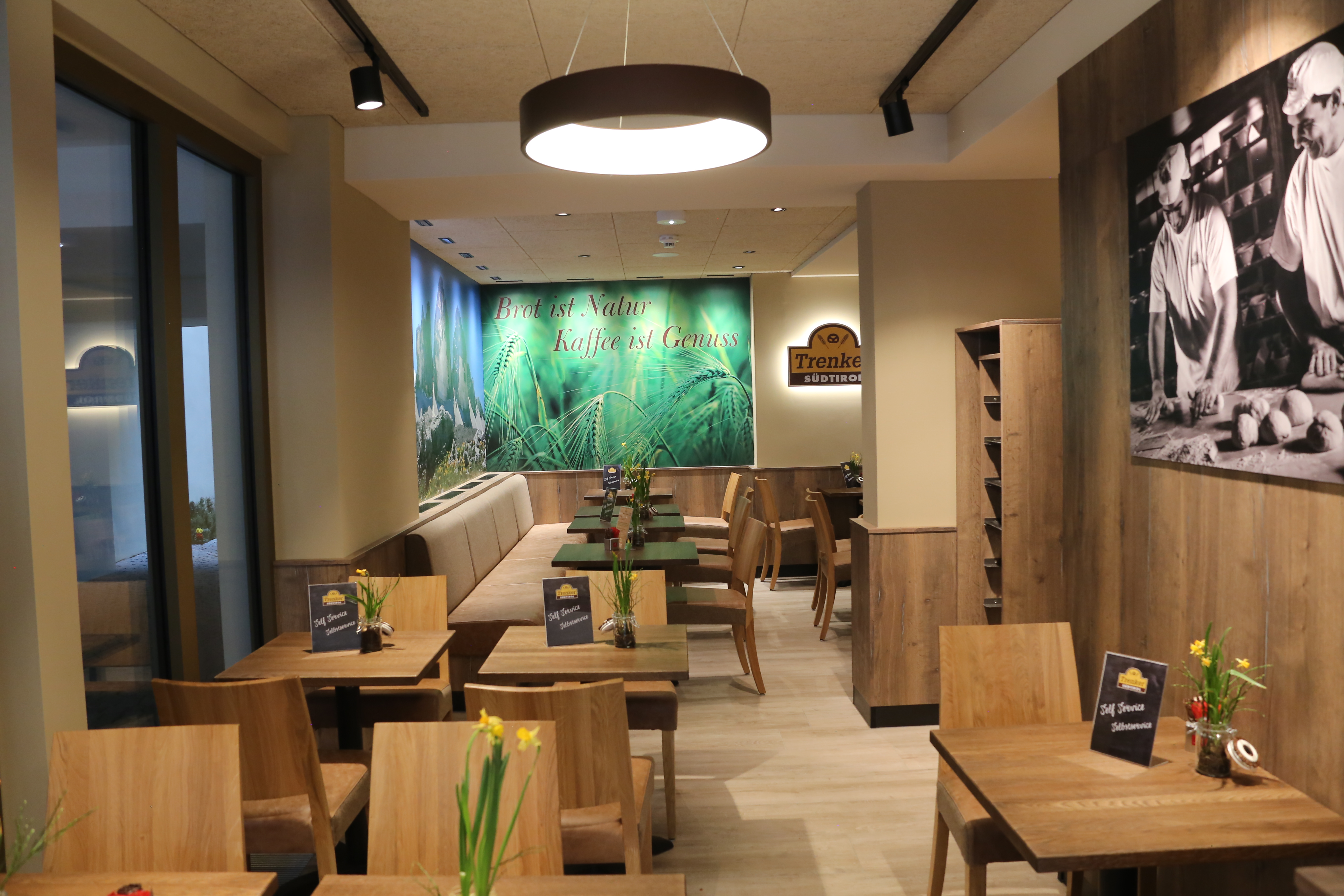 Neben einem breiten Angebot an Brot und Gebäcken können Sie in dem gemühtlichen Sitzbereich köstliche Süßspeisen und Kaffee genießen.